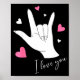 Póster Cute Valentines Day Hearts I Love You Hand Sign La