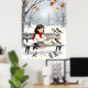 Póster Cute Winter Girl Feeding Birds Nursery Wall Art