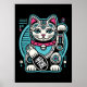 Póster Cyberpunk Robot Maneki Neko Lucky Cat, Dinero