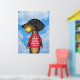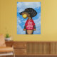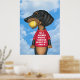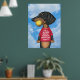 Conoce a "Bronnie" el Dachshund. Aunque dibujo la gran mayoría de mis perros neutrales en cuanto a género, les doy nombres con fines de identificación. Cada uno de mis ilustraciones son dibujados a mano usando marcadores especializados y lápices de colores. Bronnie está basada en el perro de un cliente. Una vez traté de esconder una pelota de tenis de mi dachshund. Digamos que ahora tengo un pequeño agujero en mi par de zapatos favoritos.