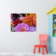 Abróchese el día con este glorioso poster que presenta una colección de flores de dalia de lirio en un colorido diseño de rosa, amarillo, blanco y malva.