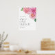 Bienvenido a los clientes con el cartel de bienvenida de este brunch con flores de color rosa personalizable. Cuenta con un ramo de flores de dalia rosa y de color acuático. Personalice este signo de bienvenida de la ducha de bebé floral añadiendo los detalles de su evento. Este cartel de bienvenida de dahlia baby brunch es perfecto para duchas infantiles de primavera.