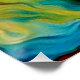 A.I. creó una impresión de flores Dahlia de colores brillantes en tonos rojos, amarillos y naranjas que brotaron de un jarrón verde, ambientado en un fondo vibrante y agitado.