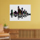 Esta obra de arte muestra la ciudad de Dallas, Texas cubierta de graffiti con el horizonte reflejado en tinta negra.