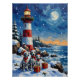 Bring spotted, distinctive charm to your holiday season with this energetic Dalmatian Christmas design! This magical scene features three handsome, black-and-white spotted Dalmatians sitting attentively at the base of a tall red-and-white lighthouse, which stands majestically on a snowy coastal cliff. The lighthouse is beautifully adorned with glowing Christmas lights and fragrant garlands. The dogs wear festive Santa hats and cozy scarves, surrounded by colorful wrapped gifts and cheerful holly branches. The ocean waves sparkle in the moonlight while soft snowflakes drift gently in the air, creating a truly magical winter holiday atmosphere. This design is a perfect Christmas gift for any Dalmatian owner, dog lover, or admirer of festive and unique non-sporting dog art, capturing the serene joy of the season.