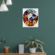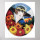 Vibrante, elegante ilustración de alta costura Art Déco francés. Retrato de una hermosa joven que lleva un sombrero negro con flor, colores negro, blanco, rojo, azul, amarillo. Diseño fresco, moderno y artístico.