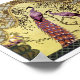 Hermosa huella de arte deco de damas, pavos reales y otras aves japonesas. El arte deco, muy popular en los años 20 y 30, sigue siendo un estilo de diseño favorito. La decoración es de temática asiática.
