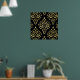 Diseño de patrones de superficie de Damasco en un estilo barroco vintage sin fisuras - patrón de detalles de color dorado (con centro más claro) sobre un fondo negro.