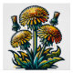 Un sencillo diente de león ilustrado que ha ido a la semilla y está soplando, de negro.