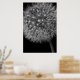 Cierre de una cabeza de semilla de Dandelion sobre fondo de mate negro, mostrando detalles finos en las semillas.