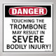 Peligro, tocar la trombona puede resultar en graves lesiones corporales. ¿Alguna vez has tenido que amenazar a alguien para que no toque tu valioso instrumento?