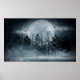 Póster Dark forest. Gloomy dark scene with trees, big moo
