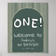 Póster Dark Green Stripes 1st Birthday Welcome Sign