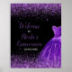 Póster Dark Purple Dress Faux Glitter Quinceanera Welcome