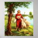 pintura vintage de david del antiguo testamento con un rebaño de ovejas cerca de él y detrás de él una escena pastoral.