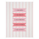 Un diseño lindo y jovencito que presenta las afirmaciones de amor propio "Soy amable, valiente, soy fuerte, soy capaz, soy amado" en un fondo de rayas rosa y blanco pastel. Ideal para la decoración de guardería, oficina, dormitorio o dormitorio de los chicas.