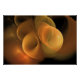 Resumen de arte fractal - Bolas redondas en tonos amarillos y Naranjas dispersándose suavemente en un fondo oscuro.