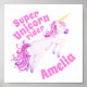 Monta un precioso unicornio súper con tu nombre personalizado en rosa arte caprichoso en acuarela póster. Ideal para un regalo personalizado para una niña que ama a los unicornios. Pintura y diseño únicos de acuarela caprichosa de Sarah Trett www.sarahtrett.com para www.mylittleeden.com