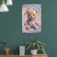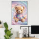 Un adorable oso de peluche flotando a través de un universo pastel soñador con un traje de astronauta acogedor. Rodeado de nubes suaves, estrellas y colores cósmicos suaves, esta obra de arte combina el encanto kawaii con la fantasía espacial. Perfecto para decorar habitaciones de niños, regalar impresiones y para cualquiera que ame ilustraciones lindas, soñadoras y tranquilizadoras.