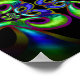 Afiche colorido de Jimette Design hecho de azul verde púrpura y fucsia con negro. ¡Coloca tu mundo con el arte!