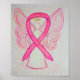 La impresión de un poster de arte ángel de la guarda muestra el arte de una pintura de ángel de cinta de conciencia rosa. Los posters de las cintas de arte de los ángeles de conciencia rosados pueden ser personalizados con mensajes personalizados para hacer imágenes de gran causa o imágenes para recaudadores de fondos, regalos de concientización u otros eventos o ocasiones especiales.