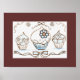 Tres magdalenas azules en azul claro y marrón son el punto focal de este cartel de arte. El diseño es de una pintura original de acuarela.