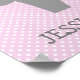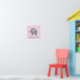 Póster de arte de pared de nursery de elefante gris lindo personalizado. Decoraciones personalizadas para la habitación de los niños. Ilustración de animal del zoológico linda para niños. Decoración del hogar con estampado de lunares rosados y blancos. Diseño neutral para niña o niño. Cambiar el color de fondo. Tema safari / selva. Plantilla de texto gris para nombre o cita divertida.