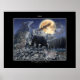 Un poderoso grizzly Bear comunica con vida silvestre en la zona de las Montañas Rocosas. Una luna llena de oro ilumina la escena mientras los lobos aullan, las águilas se deslizan, los cuernos grandes arman en las laderas rocosas y las cumbres montañosas se disparan.