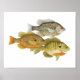 Poster de arte que muestra 3 estudios de acuarela de diferentes especies de peces solares: Redear, Pumpkinsea y azulado. De los originales del artista natural Thom Glace