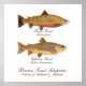 Poster de arte que presenta la trucha Ferox de Escocia e Irlanda y la trucha Gillaroo de Irlanda, subespecie de la trucha parda. Del artista acuático Thom Glace