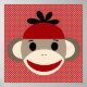 Poster de arte de Sock Monkey y Polka Dot. Rojo, blanco, marrón y negro. 12x12. disponible en otros tamaños.