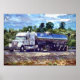 Un gran depósito de combustible blanco atrapa temprano la luz del sol en su camino por la autopista de New Brunswick. Este diseño es creado como un homenaje a los dedicados Hombres y Mujeres que bajan por nuestras autopistas entregando los bienes y servicios necesarios y mantienen a nuestras grandes naciones funcionando sin problemas. El poster perfecto para cualquiera que ame los camiones y el manejo. Creado por Skye de zazzle.com/ravenspiritprints. Podemos hacer diferentes tamaños si lo desea, o podemos colocar esta imagen en otros productos de regalo bajo petición. Sin más.