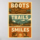 Celebra la alegría del camino con esta encantadora impresión poster de "Boots, Trails, Smiles". Diseñado con una estética vintage de senderismo, esta obra de arte captura la esencia de aventuras al aire libre, momentos compartidos y recuerdos de barro. Perfecto para decorar una cabaña acogedora, un rincón de aventura o un espacio con temática natural, es una pieza muy agradable para los excursionistas, las parejas y todo aquel que encuentre la felicidad fuera del camino. Un gran regalo para los amigos, excursionistas y exploradores de fuera.