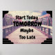 Todas las habitaciones "merecen ser especiales". ((Empieza Hoy MAÑANA Quizá Hasta Tarde) Poster Inspirador Construye tu "propio muro personal" de ( Citas positivas para ayudarte ) " Mantente Motivado " en una base diaria. Estos Posters de impresión de calidad suprema sirven como piezas de extracto, Mejora de un entorno personalizado (( 24 X 36 )) .: Acabado semibrillante .: Para uso interior Una declaración en cualquier habitación. Estos posters semibrillantes y de calidad de museo están impresos en papel duradero.