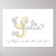 Arte de inicial/monograma personalizado de Y perfecto para el dormitorio o la sala de juegos de una niña en tonos de gris, blanco, amarillo, rosa y púrpura. Personalice con el nombre de su hijo que comience con Y, y el significado del nombre para un toque verdaderamente personalizado en el dormitorio o la guardería de su hijo, este ejemplo es para el nombre Yulia Joven, romántico con estilo creativo. Impresión de cartel lindo ideal para un nuevo bebé, bautizo o regalo para baby shower. © Diseño de arte gráfico y descripción de dibujo de monograma de Y único con corazones y flores de Sarah Trett para www.mylittleeden.com y namesense