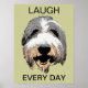 presenta un diseño de arte pop de color barbudo del "perro riéndose" de pawsforamoment. El modelo es el color barbudo del artista. "Ríe todos los días"