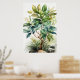 La representación artística de Wabi-Sabi de una planta exuberante con hojas amplias y verdes se representa al lado de algunas ramas frondosas que emergen de un entorno natural. Las plantas exudan un poco de frescura y vitalidad en un fondo claro.