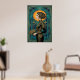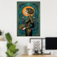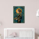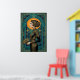 Captura la elegante fluidez de una actuación de cabaret de los años 20 con esta impresionante silueta Art Déco. Con una grácil bailarina de perfil sosteniendo un abanico, situada contra un radiante sol dorado y una arquitectura geométrica de azul turquesa profundo. La composición está enmarcada por patrones intrincados, lo que la convierte en una pieza de declaración perfecta para un camerino, dormitorio o salón sofisticado.