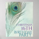 Póster de banner de acuarela boho chic de plumas de pavo real. Personaliza con cualquier texto. Artículos coincidentes en mi tienda.