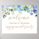Póster de bienvenida a la fiesta de compromiso floral azul polvoriento