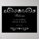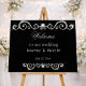 Una barra de diamantes brillantes decora esta señal que dice Bienvenidos a nuestra boda.