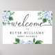 Este letrero de bienvenida presenta un diseño de acuarela de hortensia azul suave con un título de bienvenida de caligrafía moderna. El título del texto script es una imagen que no se puede editar. La imagen del título se puede cambiar de tamaño para que se ajuste a cualquier tamaño de póster. Todo el texto restante es totalmente editable. Para una personalización más avanzada de este diseño, simplemente seleccione el botón "Personalizar" arriba.