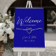 Póster de bienvenida de boda azul real