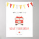¡Sona la alarma y agarra tu equipo! Perfecto para el pequeño bombero en tu vida, este letrero de bienvenida de fiesta de cumpleaños de camión de bomberos presenta un simpático camión de bomberos rojo que emocionará a los niños sobre la fiesta.