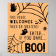 Bienvenidos trucos o terapeutas con un toque lúdico y espeluznante usando este poster "Esta casa da la bienvenida a los trucos o tratamientos, entra si te atreves, Boo!". Perfecto para añadir un poco de espíritu de Halloween a su porche o entrada, este cartel invita a los huéspedes a entrar con un mensaje divertido y espeluznante. Ya sea que te prepares para una noche de truco o truco o para organizar una fiesta de Halloween, este poster seguramente creará un ambiente festivo. Cuelgue fuera de su casa para deleitarse y asustar a los visitantes a medida que se acercan.