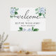 Póster de bienvenida floral de Hortensia Azul