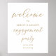Póster de bienvenida para fiesta de compromiso elegante en dorado | Letrero de bienvenida de boda dorado | Señales para cena de compromiso doradas