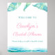 El follaje tropical en varios tonos de verde turquesa se combina con un toque de texto fucsia.