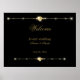 Una barra de diamantes brillantes decora este letrero que dice Bienvenidos a nuestra boda.
