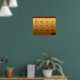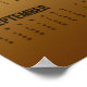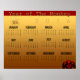 Calendario dorado para el año del mono de fuego con letras doradas (año del mono), símbolo chino del mono dorado en un círculo y números con sombras paralelas + chimpancé rojo en la esquina derecha.